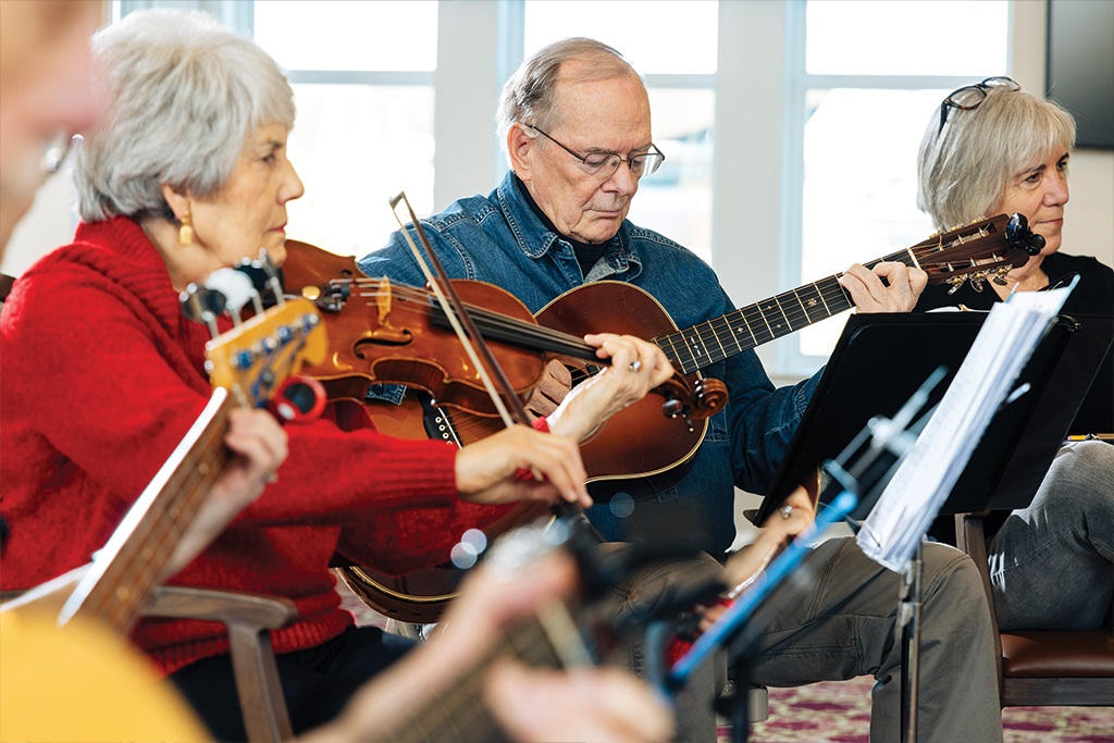 If you walk into the Hawk Ridge Board Room on Wednesday afternoons, you might be surprised to find yourself enveloped by the musical stylings of a group of locals–so local, in fact, that they are all residents of The Hill at Whitemarsh.